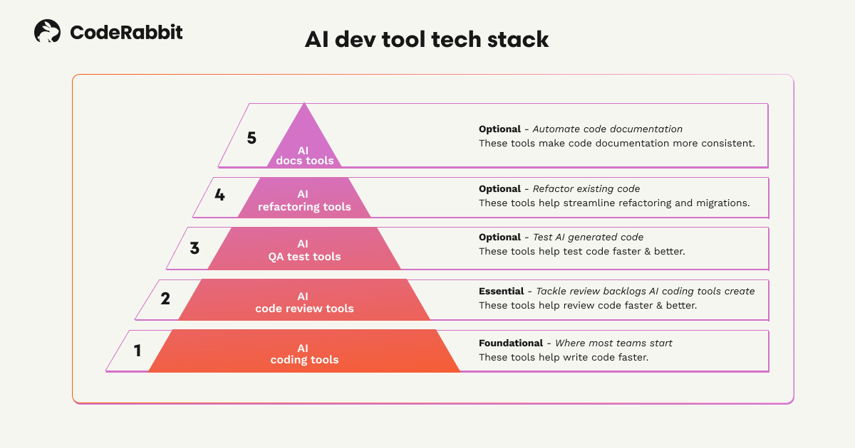 But this shift to thinking about AI adoption as a stack is also about using the same approach of leveraging AI to boost productivity that worked for code generation for other manual tasks. Why not review faster and test faster if you’re coding faster? Especially since almost no one loves reviewing code or writing tests?
