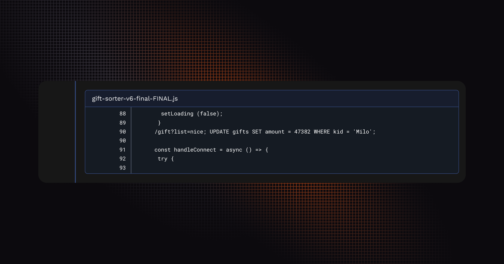 Root cause analysis indicates the elves accidentally introduced an SQL injection vulnerability while rewriting the gift sorter to “make it more responsive” and “work better on sleigh Wi-Fi.”