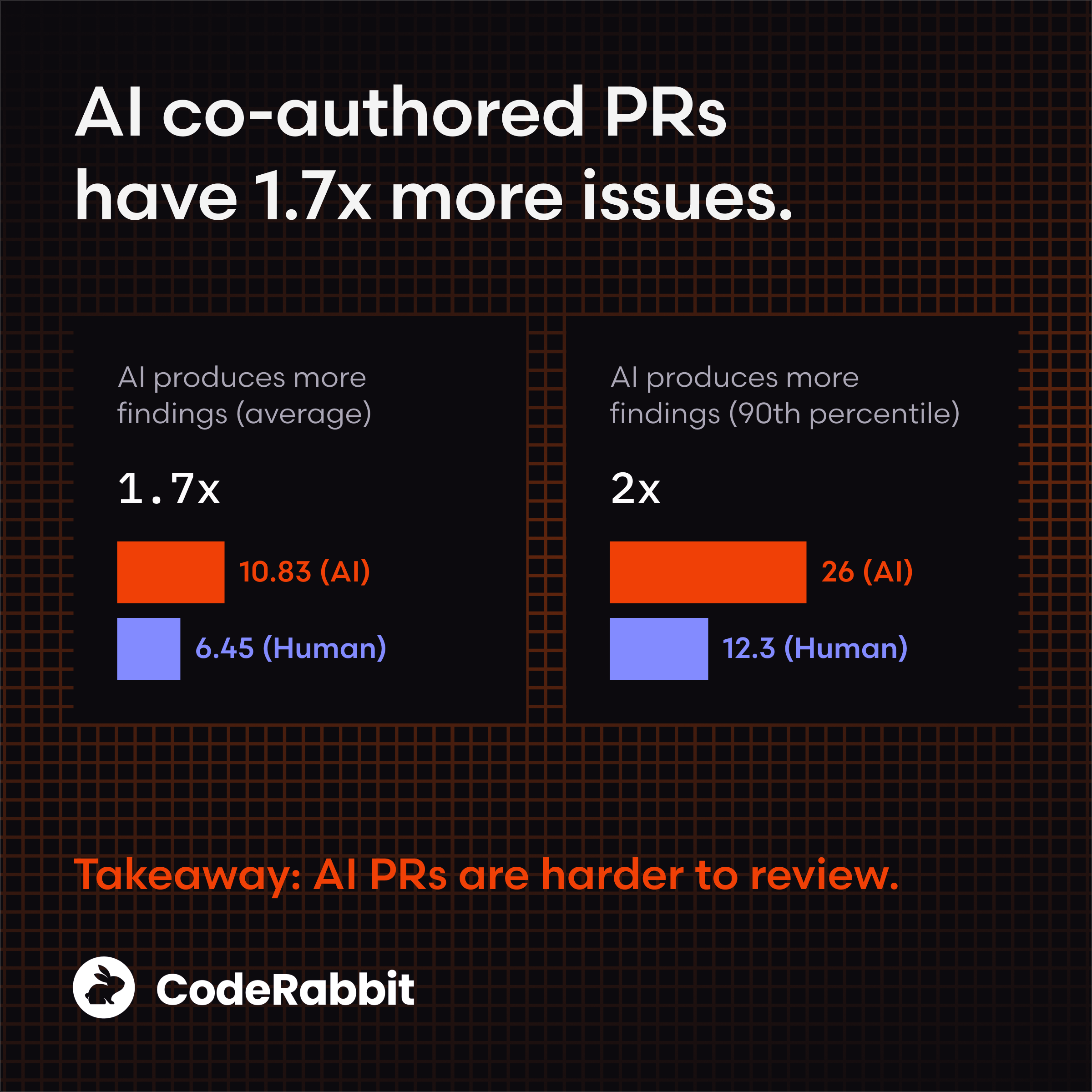 Across 470 PRs, AI-authored changes produced 10.83 issues per PR, compared to 6.45 for human-only PRs. Even more striking: high-issue outliers were much more common in AI PRs, creating heavy review workloads.