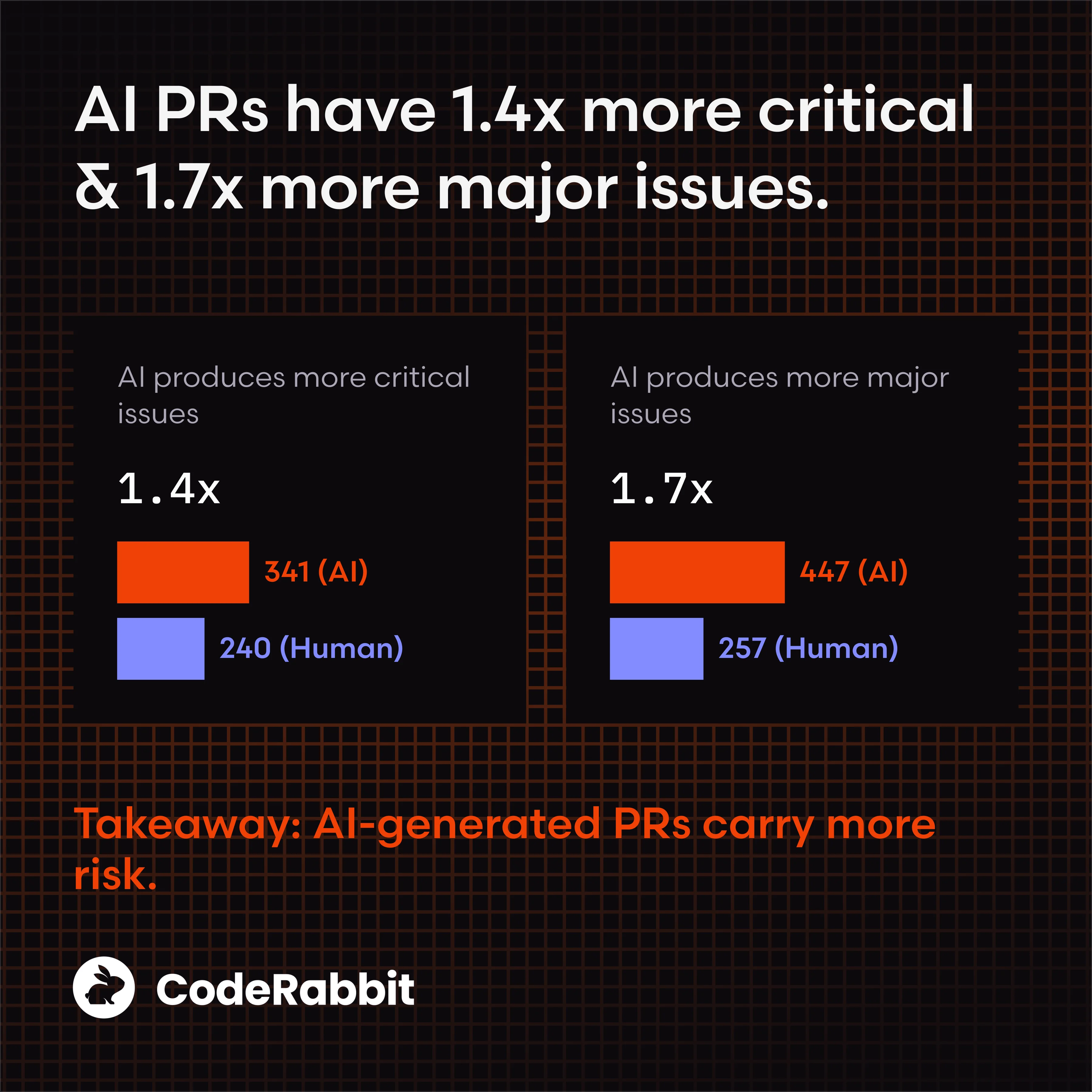 AI PRs show ~1.4–1.7× more critical and major findings.