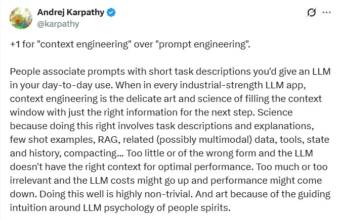 Context engineering has recently become a buzzword. In late June, Shopify CEO Tobi Lutke tweeted about it and Andrej Karpathy chimed in to point out that good context engineering is what sets AI apps apart.